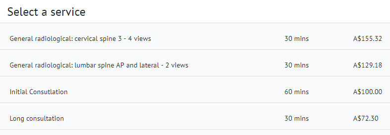 If you set your fees as public, patients will see your services (and fees) list, select the service they need and then the time and date that suits them: