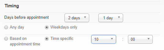 4. Choose between Any day, (which means the reminder can be sent on a weekend if the appointment is on a Tuesday and the reminder is to be sent two days before) or Weekdays only;