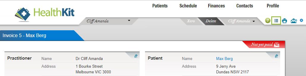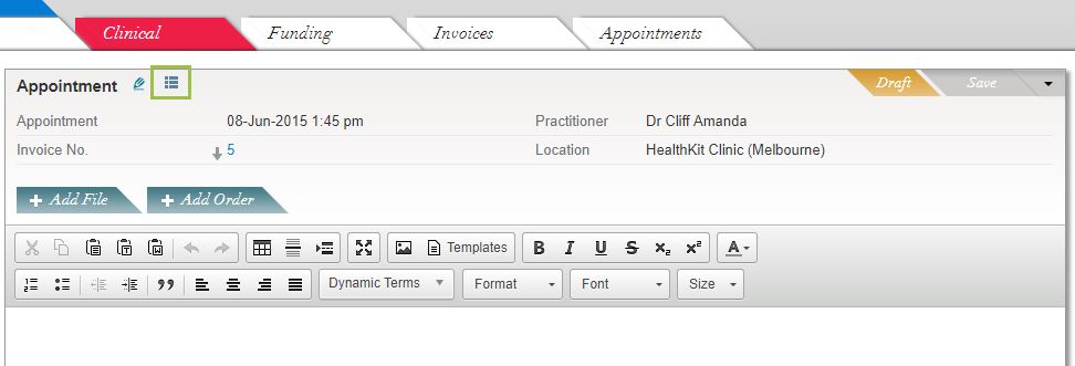 - First step is to locate the Tasks icon on the appointment, case note or invoice page, here's where you can find it: