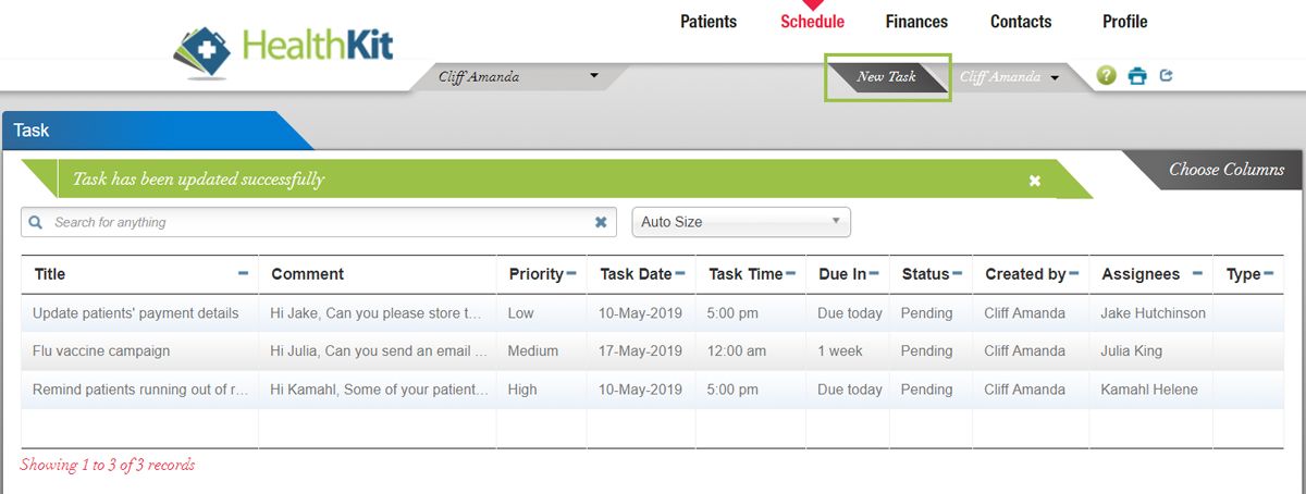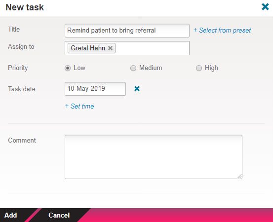 Creating and completing tasks not only feels good but it helps you manage and save time to focus on what really matters: treating patients.