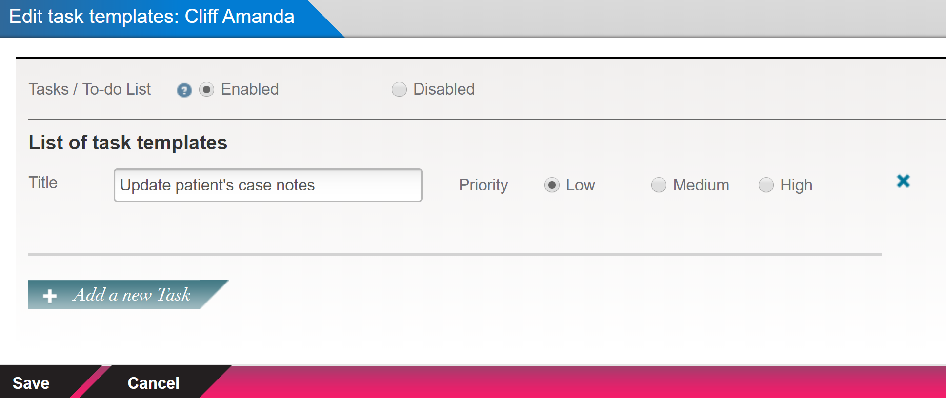 If you'd like to have the option to add tasks to appointments, case notes and invoices, make sure you enable his feature in your Settings page: