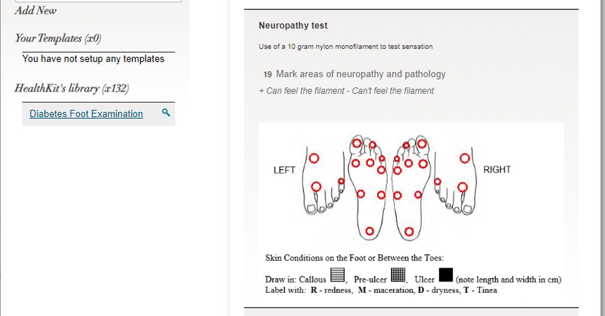 Halaxy offers free clinical tools customised to each profession – including specific tools to help in the treatment of diabetes, such as the diabetes foot examination template and a tool to record important test results like HbA1C.
